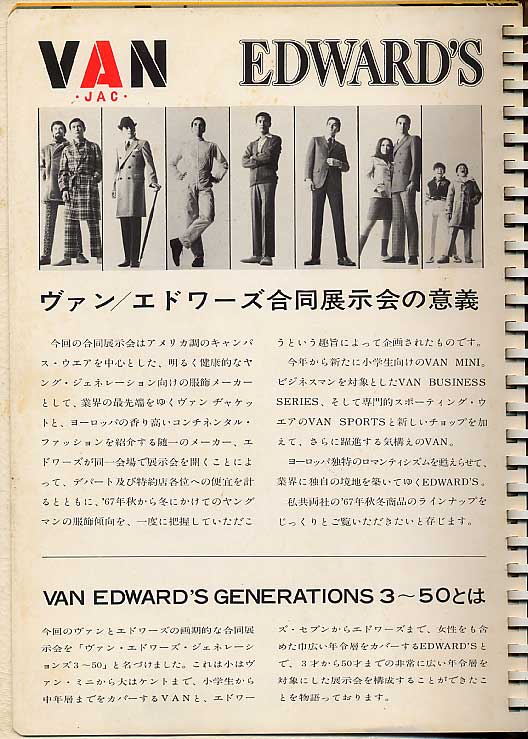 1967年8月8日・9日の2日間、“ VAN EDWARD'S GENERATIONS”と銘打ち、東京ホテル・オークラ、平安の間で、異色の組み合わせとも言える展示会が催行されました。