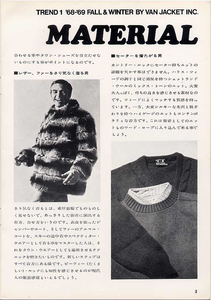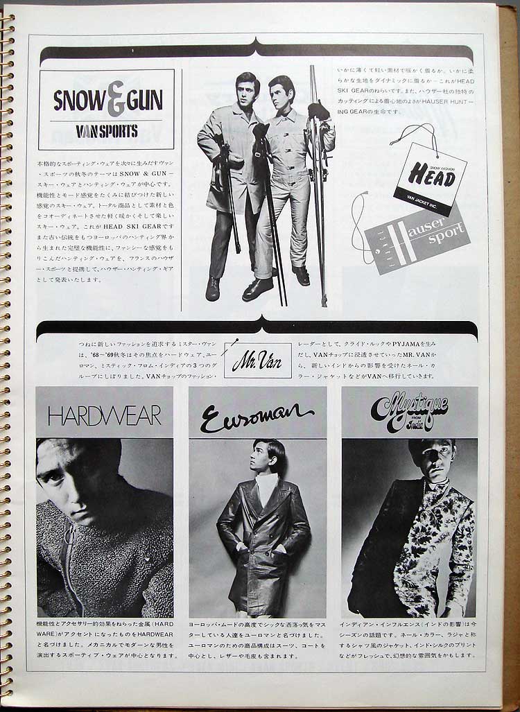 『 VAN JACKETは1967・68秋冬より脱アイビーを打ち出し、“ DISCOVER AMERICA ”のキャンペーン・テーマのもと、東部アメリカだけではなく、西部、南部そして北部アラスカのアイテムなども紹介し始めました。