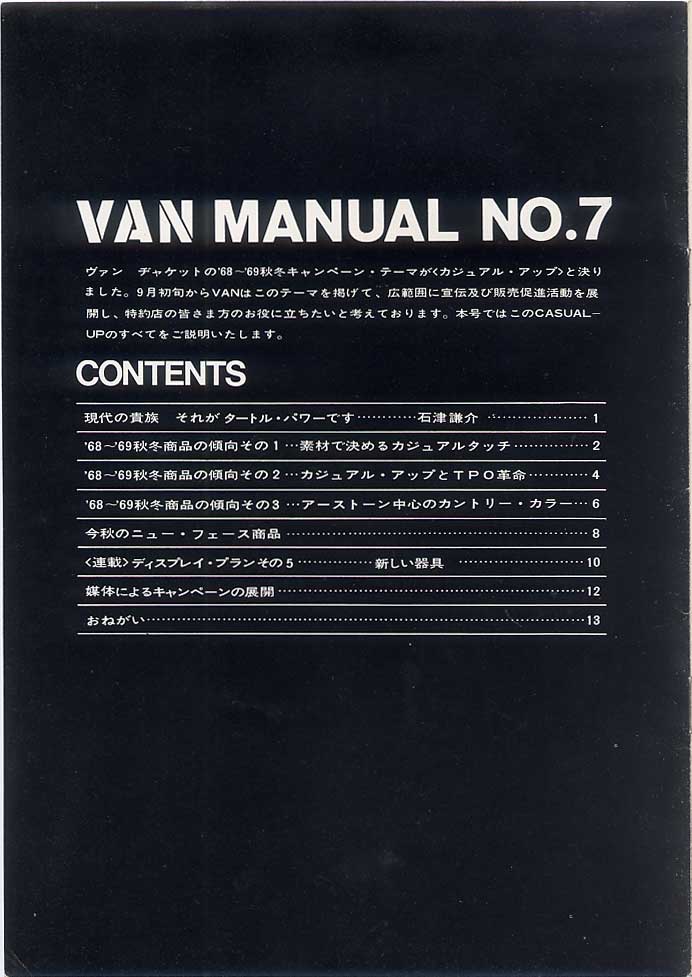 (下に掲げたVAN MANUAL のトップに石津社長が、今、なぜ、“タートル・ネック”なのか、を述べています。)