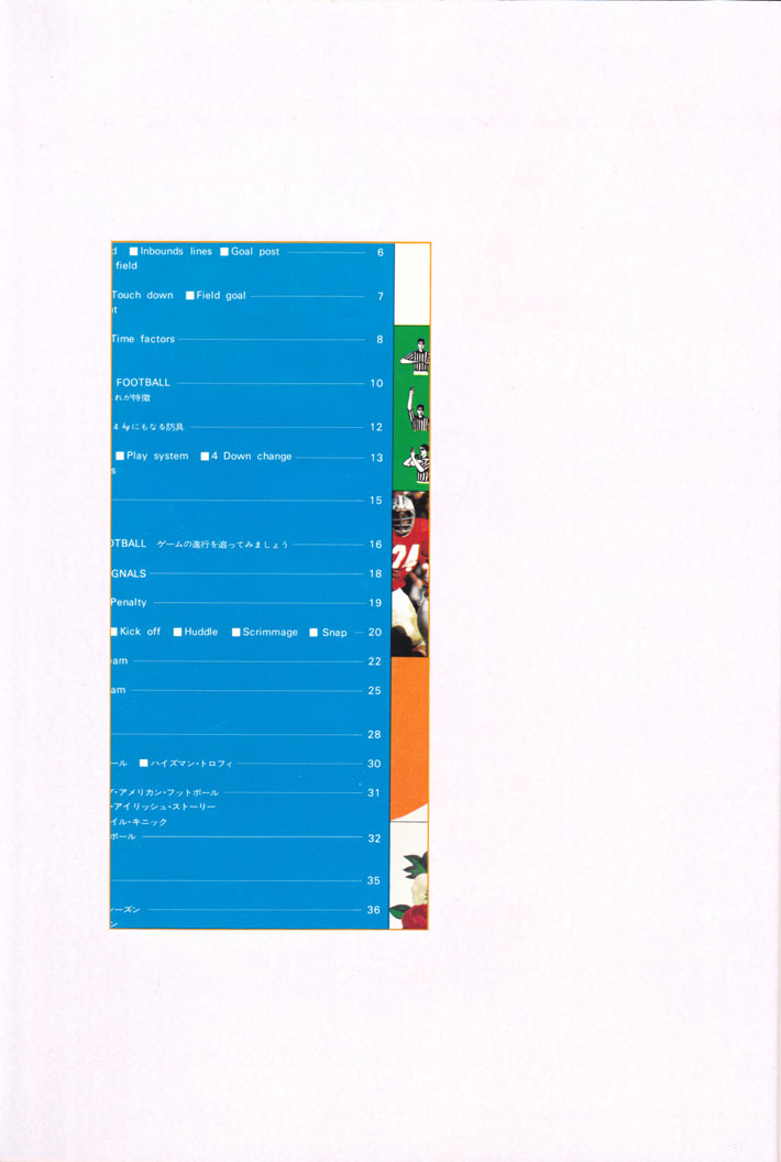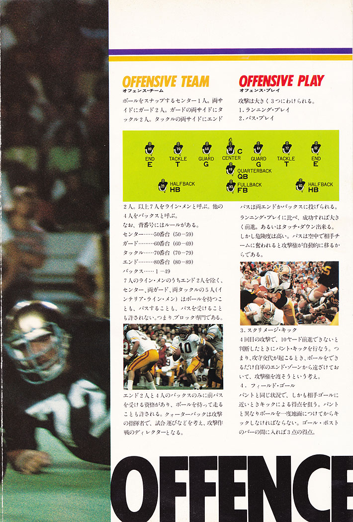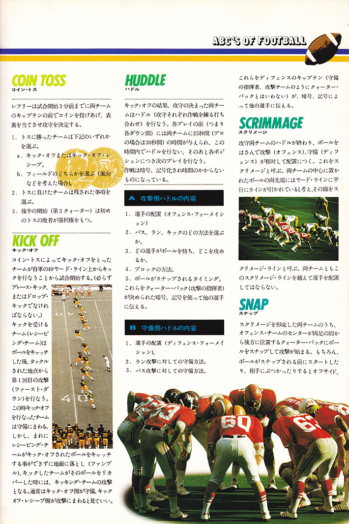 アメリカン・フットボールのギア、エクイプメントをはじめゲームの進行、ルール解説、専門用語解説、などなど盛りだくさん!