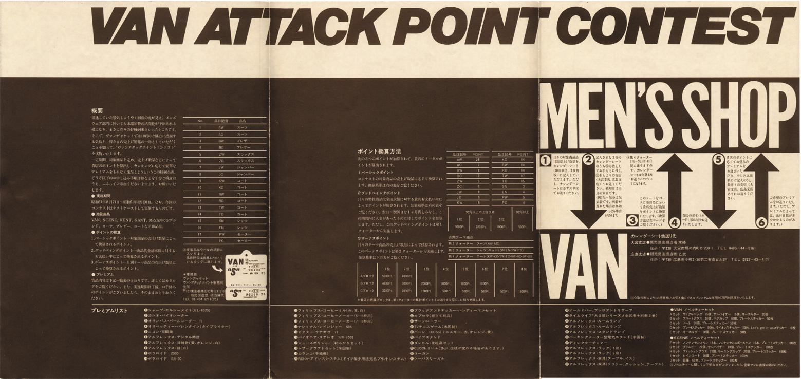 期間と展開地区を決め、各VAN関連CHOPのアイテムごとに売上ポイントを設定し、それを期間ごとに集計、ポイントに見合った景品を各店に贈呈するもので、言ってみれば今女性達に根強く人気のポイントカードと似たような仕掛けを店舗ごとに実施したのが、この“VAN