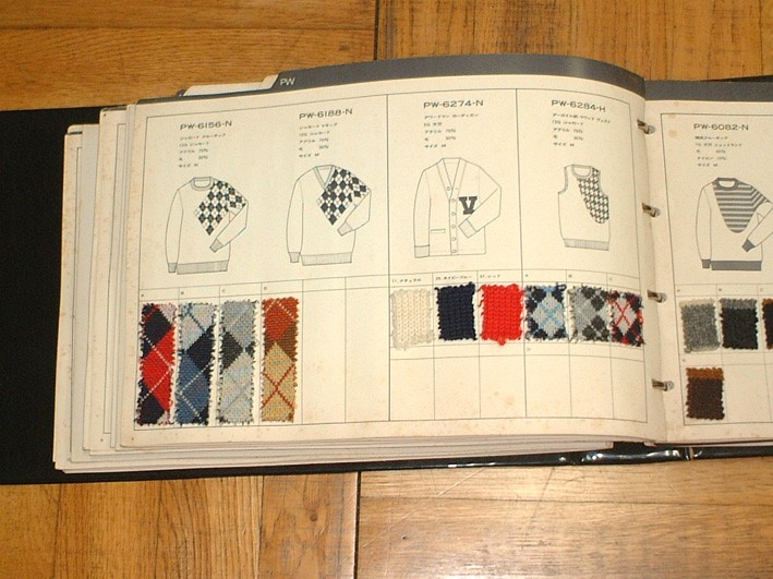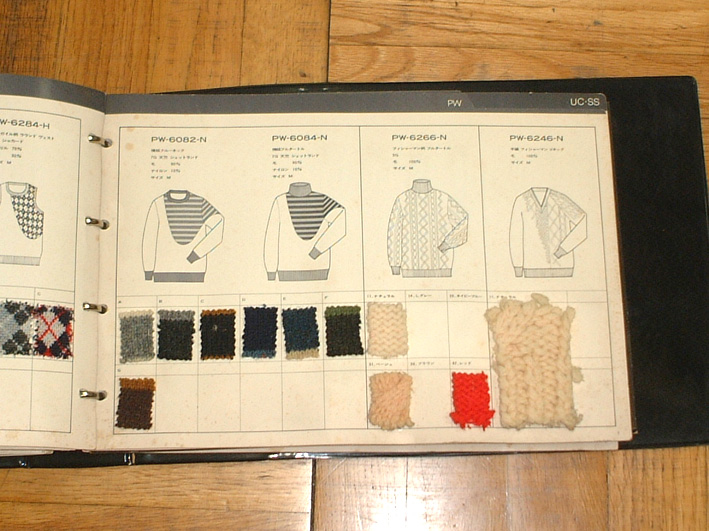 アイテムごとに、線画によるパターン表示とその下にそれぞれ展開するスワッチ見本を貼付して有ります。