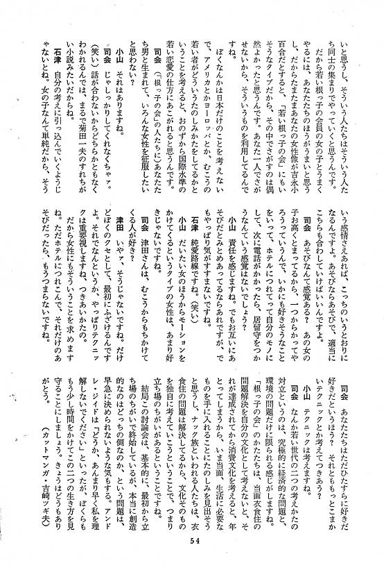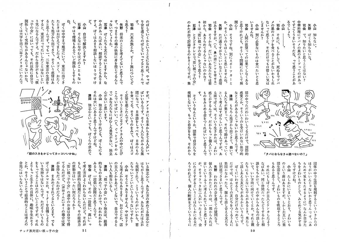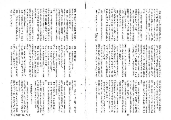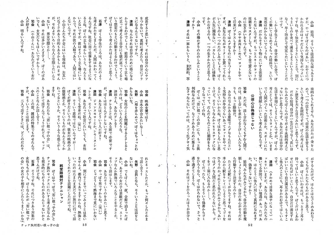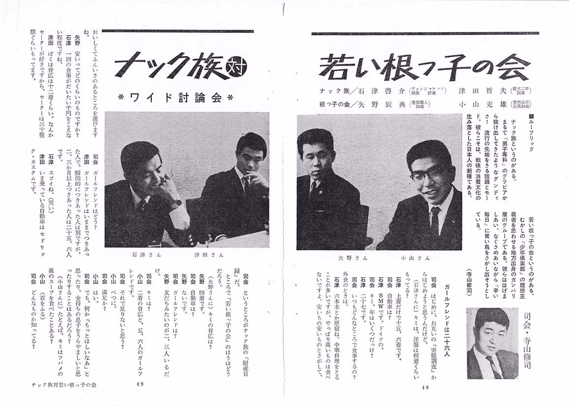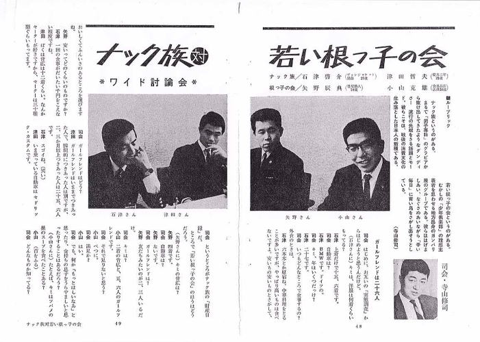 “ナック族対若い根っこの会”のワイド討論会ということで、司会にはなんと・・・!!!! 若き日の故・寺山修司氏が。 |