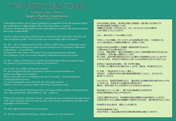 10日ほど前になりますが、 “ THE NEW YORK TIMES ” に