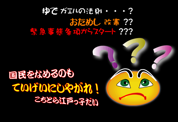 ナチス・ヒトラーが、1933年3月、行政府( 内閣 )に立法権などを与えた全権委任法によって、国民の知らないまま憲法を変えて、独裁国家をつくった歴史が思い浮かぶ。当時もっとも民主的と言われたワイマール憲法が停止させられ、ナチス・ヒトラーが権力を握った。