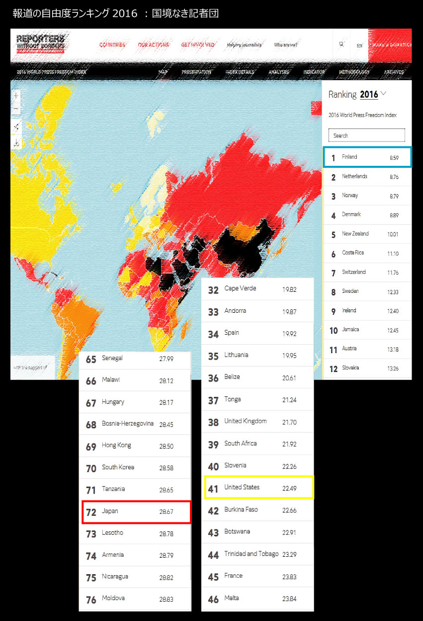 国境なき記者団により毎年発表されている “ 報道の自由度ランキング ” で日本は次のような結果となってしまいました。