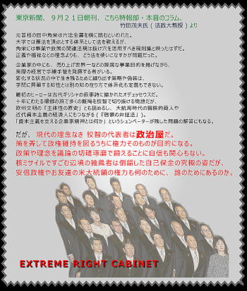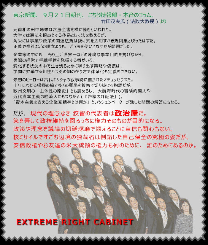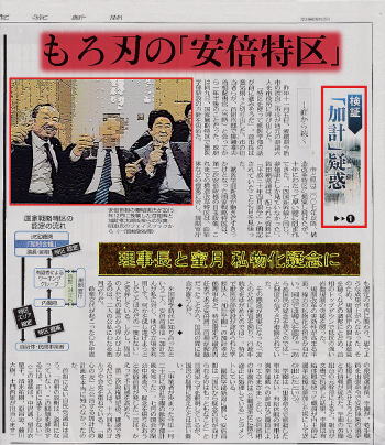 さらにさらに、国家戦略特区などと大仰なタイトルを付けて、やっている事は腹心の友と呼ぶ間柄の身近な友人に、国家及び自治体の大金を使って大層な便宜を供与している現状が有る。 呆れてものが言えない。