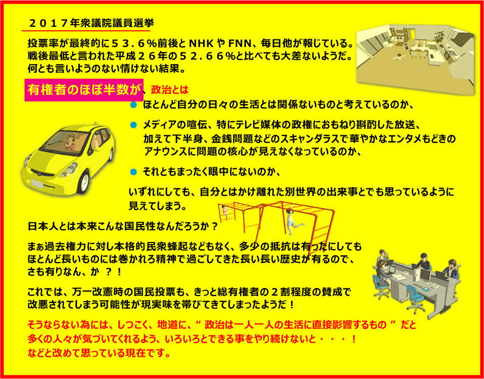 ここで取り上げたい問題は上述した他に、憲法改悪も有るし、ここ2~3年の間に強行採決された悪法の数々も有る。いずれにしろ根本原因とも言えるカルトの存在を抜きにしては語れないので、次の機会にここで記していきたいと思います。 取りあえず今日のところはこんな感じで!
