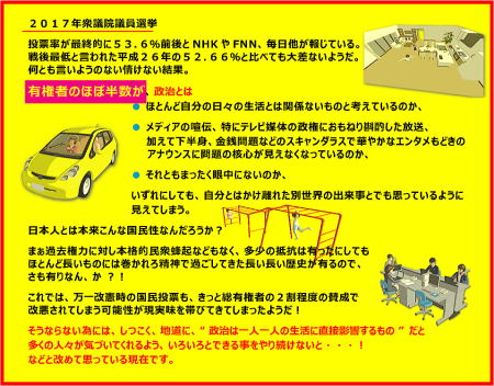 今や政府に対しアピールすることも、または各選挙時でさえほとんど民意を突きつけ、時の政治家に問う事をしてこなかった。