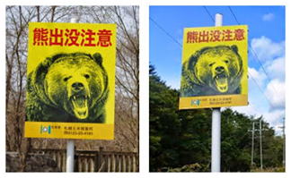 | 此れは現在の熊出没注意の看板、当時はもっとオレンジ色だった。 |