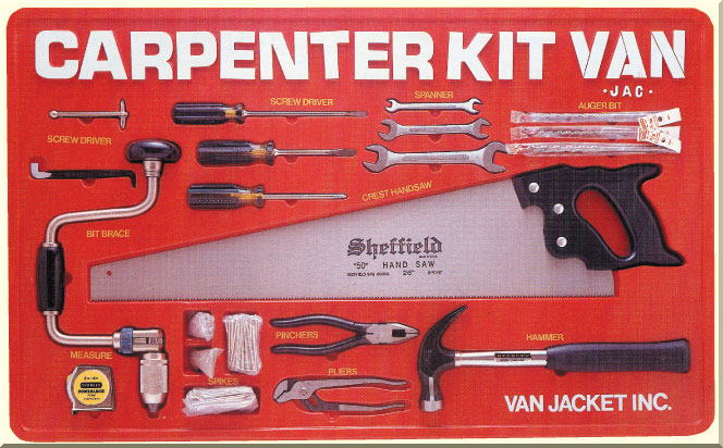 ここでこの“My Woody Country”のキャンペーンポスターとその“Carpenter Kit”の写真をお見せしよう。本物をデジカメで撮りたかったのだが、残念ながら叶わなかった、誰か元VAN社員で持っている人、特にSP関係者、サイト管理者まで連絡を・・・・・。 |