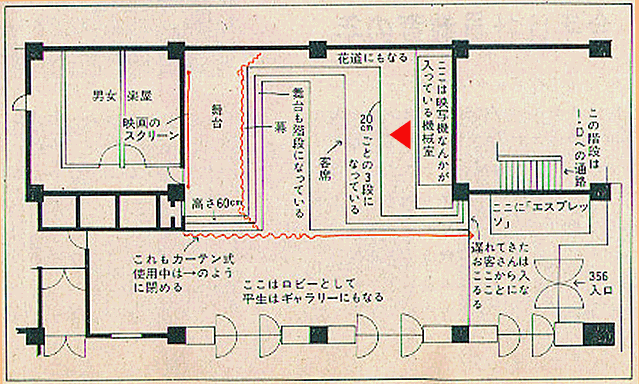 当時青山一帯には、劇場はおろか専門のイベントスペースもなく、この種の施設の言わば空白地帯だったようで、山口氏は自分の思いの丈を実現すべく動き出す事になります。(以上山口氏談)