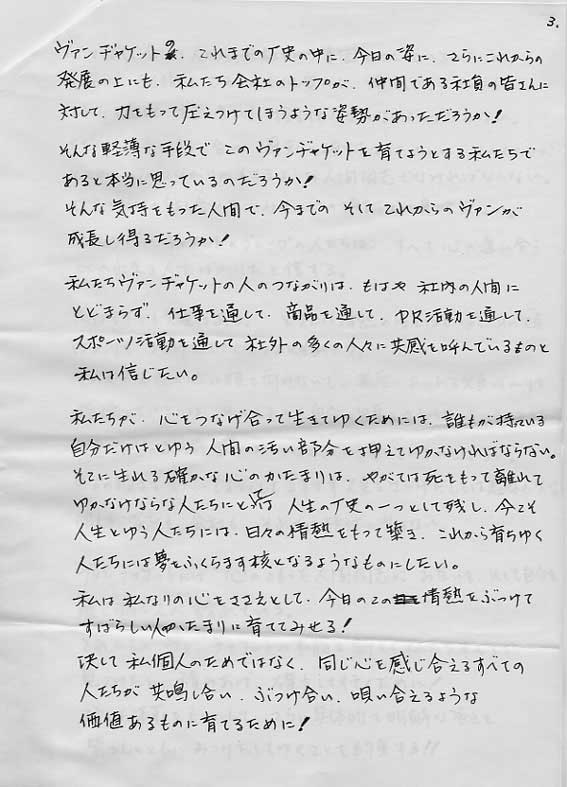 部長、申し訳ありません。VANは私の青春そのものです。消滅は絶対に許せません。私は、この世に石津会長とVANの名が存在する限り、VAN再建を目指します。