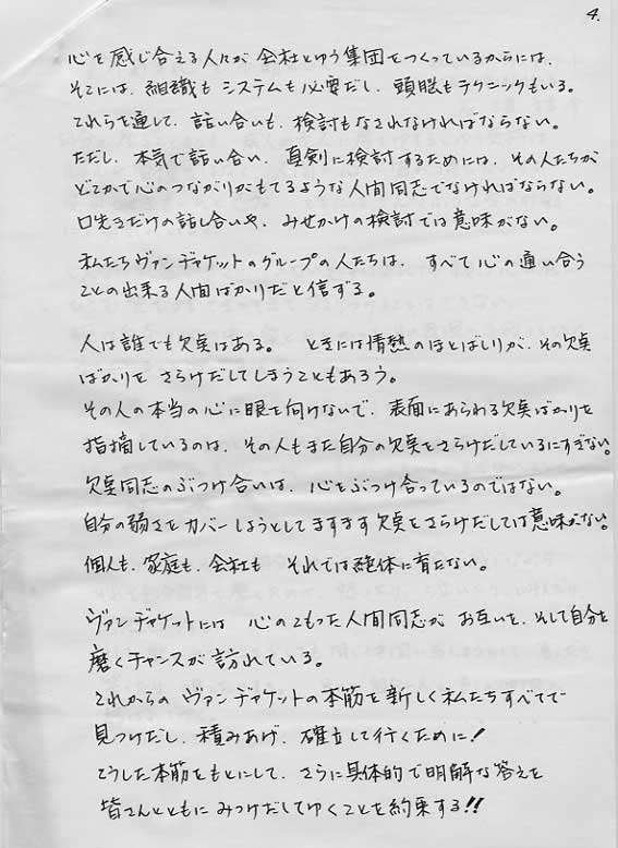 「残念ながら、我社は、諸君達の努力にもかかわらず、本日、やむをえず会社更生法の申請を行なうに至った。