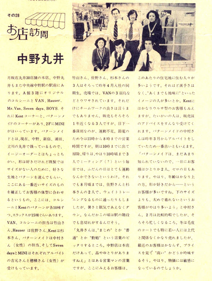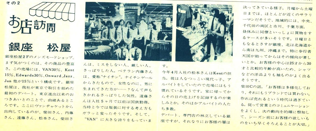 VAN PRESS 1974年版に載った中野丸井と1972年版に載った銀座松屋の記事。