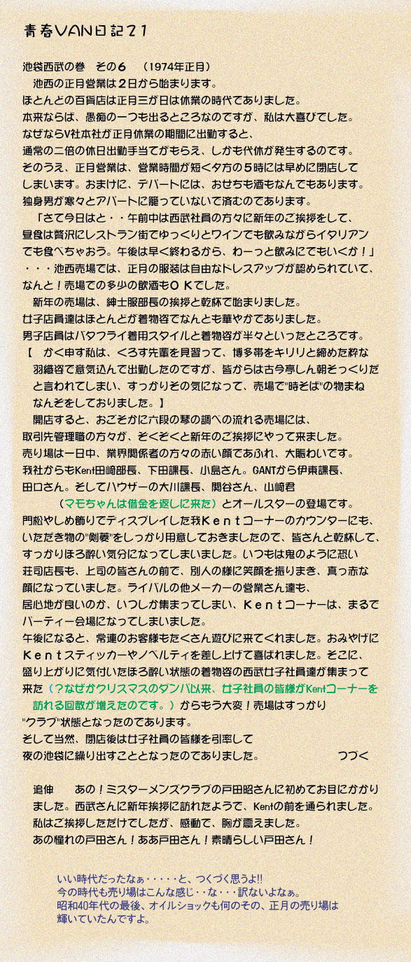 “VAN SITE”SEISHUN VAN NIKKI 21