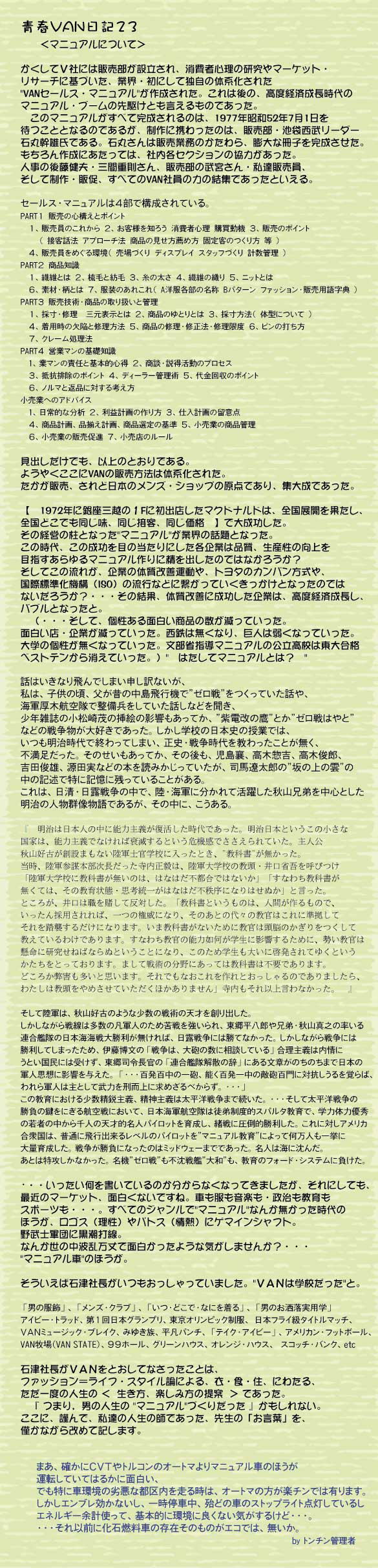“VAN SITE”SEISHUN VAN NIKKI 23