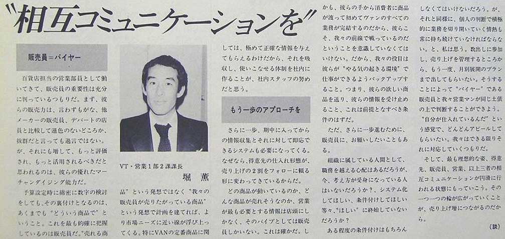 かつては、VAN本社の中心は内勤の“ものづくり”関係者達であった。