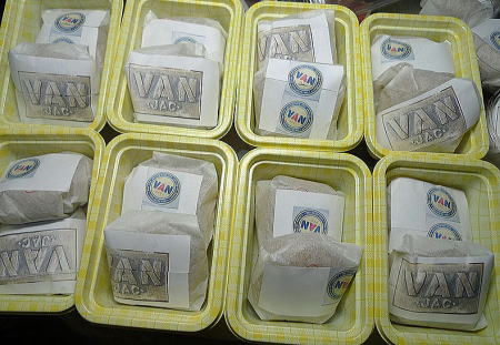 VAN JACKET社章 ( 四角 ) と水貼りスティッカー ( 丸型 ) がプリントされた、OBOG会の “ おみや ” ・・・?