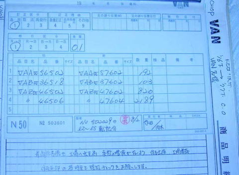 | 1976年下期から77年下期までのVAN CHOP在庫管理用 ?? 商品明細書 |