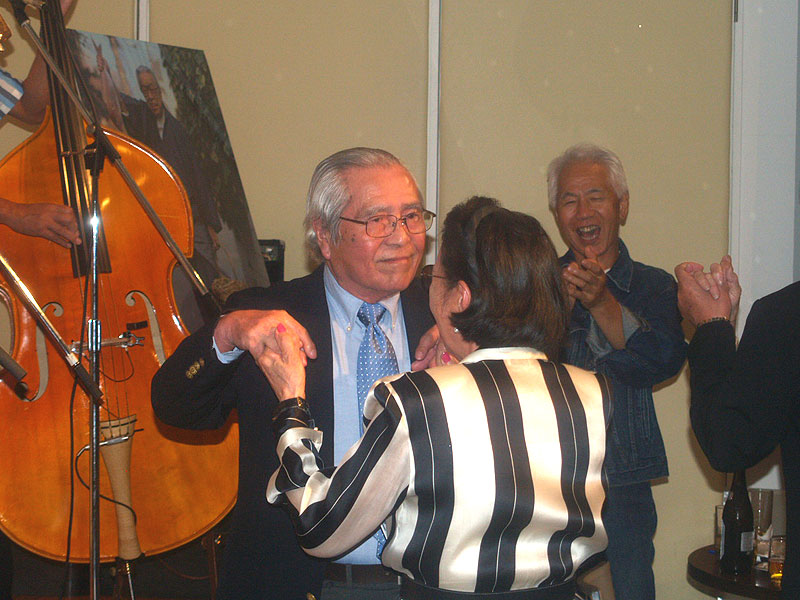 | 高木元専務と華麗なダンス・・・・・( 石津謙介元会長の写真をバックに・・・) |