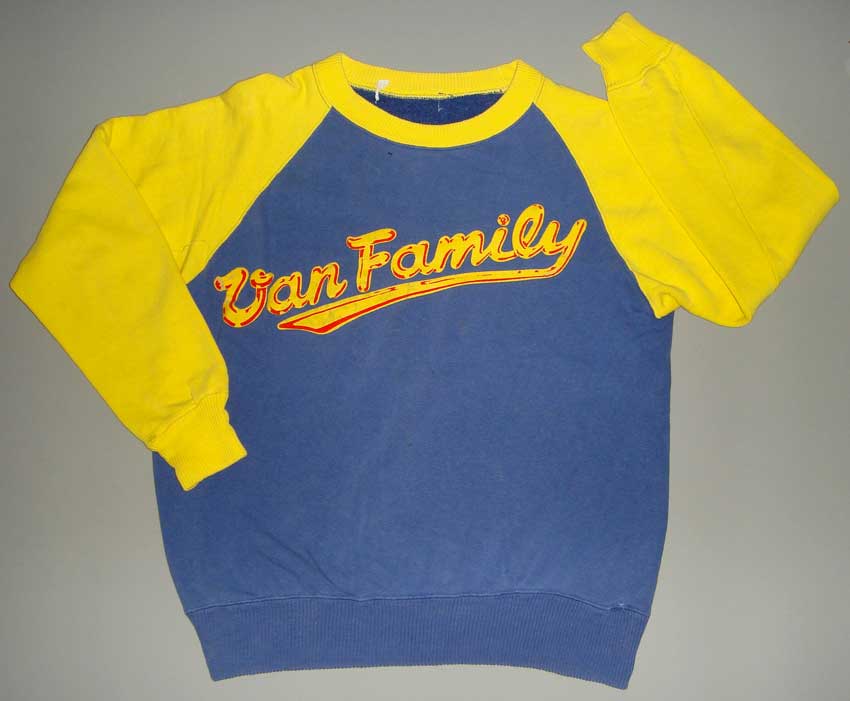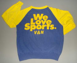 左は、年に一度、主に竹橋近くの東京科学技術館で行われたVAN FAMILY SALE(ヴァン・ファミリー・セール)用に企画された“VAN FAMILY”マグ、同じロゴデザインのトレーナー(下の写真)をセール要員全員で着て、まるでお祭りのような催事でした。このセールには、芸能人も多く駆け付け、お目当てのアイテムを大きな手提げ袋一杯にというより、何袋も買っていたのを覚えています。会場には長い行列が出来、VANGUARDSの面々が行列の整理や駐車場の管理に奔走していたものです。