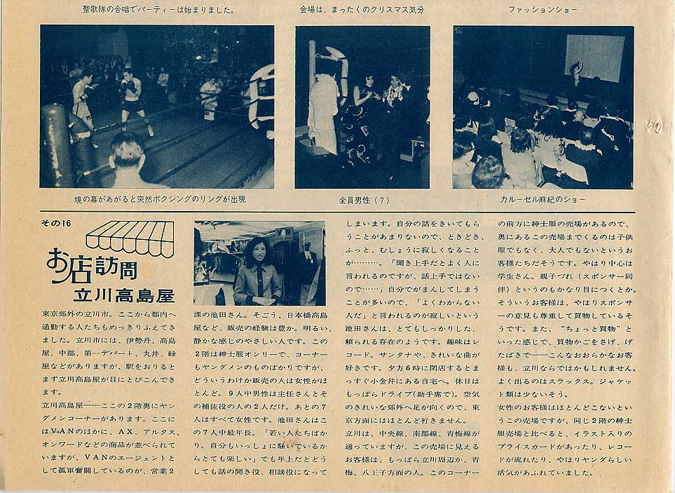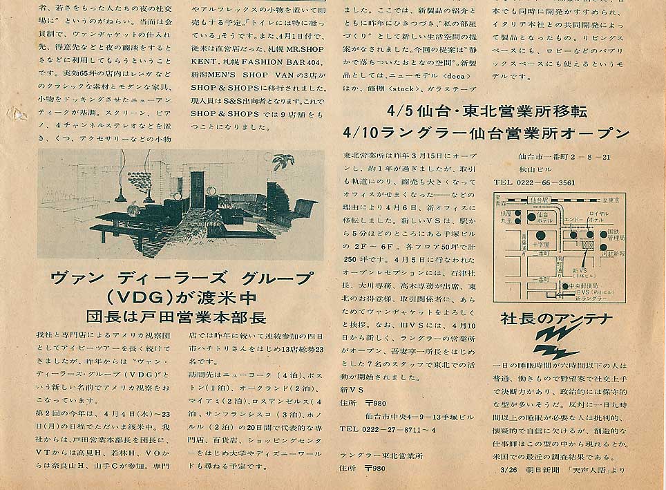 またこの入社式に先立って3月には“VAN 99 HALL”のこけら落としが行われ、その状況を掲載、何とカルーセル麻紀さんのショーなども行われました。