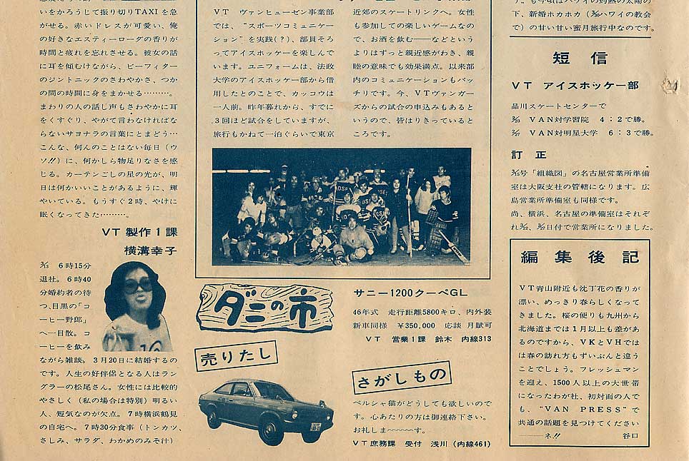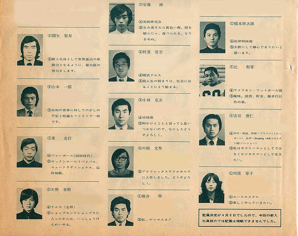 この号は1973年4月より各部署に配属される新入社員の顔写真と簡単なプロフィールを掲載し、全社員に告知しています。懐かしい顔が出てくると思います。 (一部掲載データ削除してあります。)