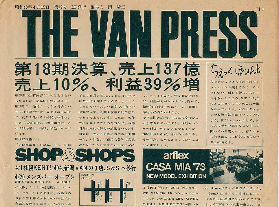 それにしても凄まじい数の新入社員が入社したことになっています。この“VAN SITE”の製作趣旨ページの