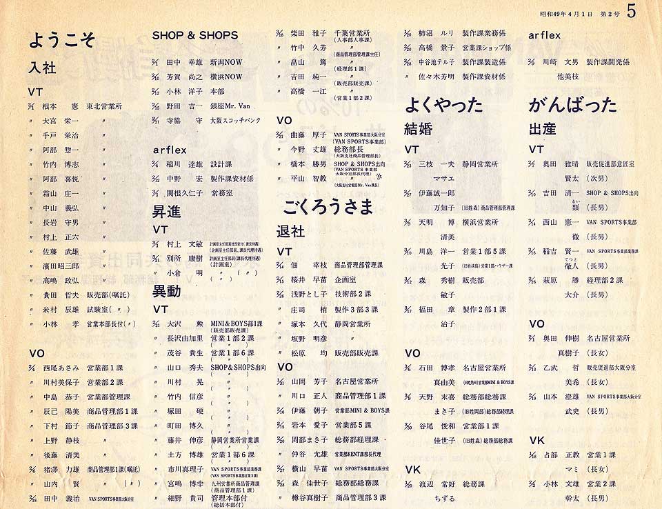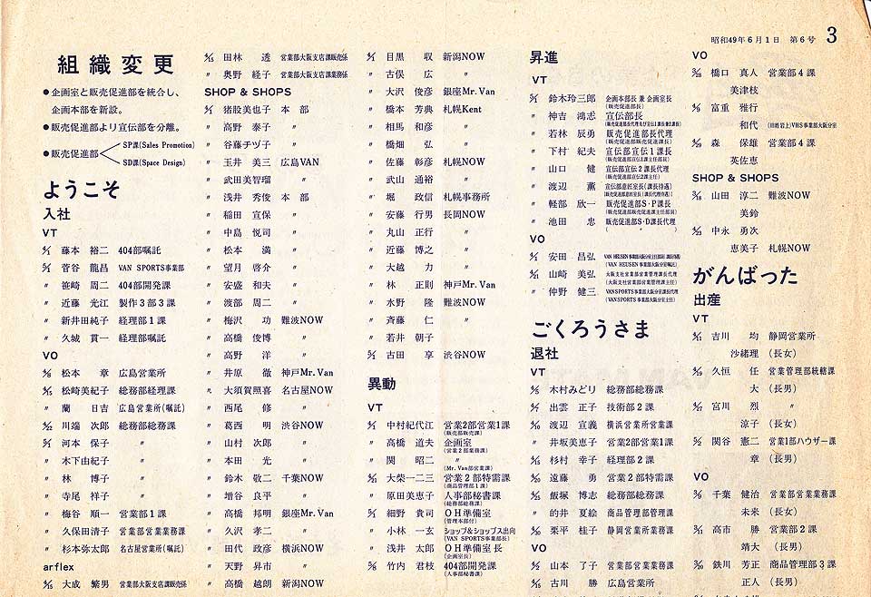 VANの社員総数が2000名を越えた、というニュースが巻頭を飾っています。