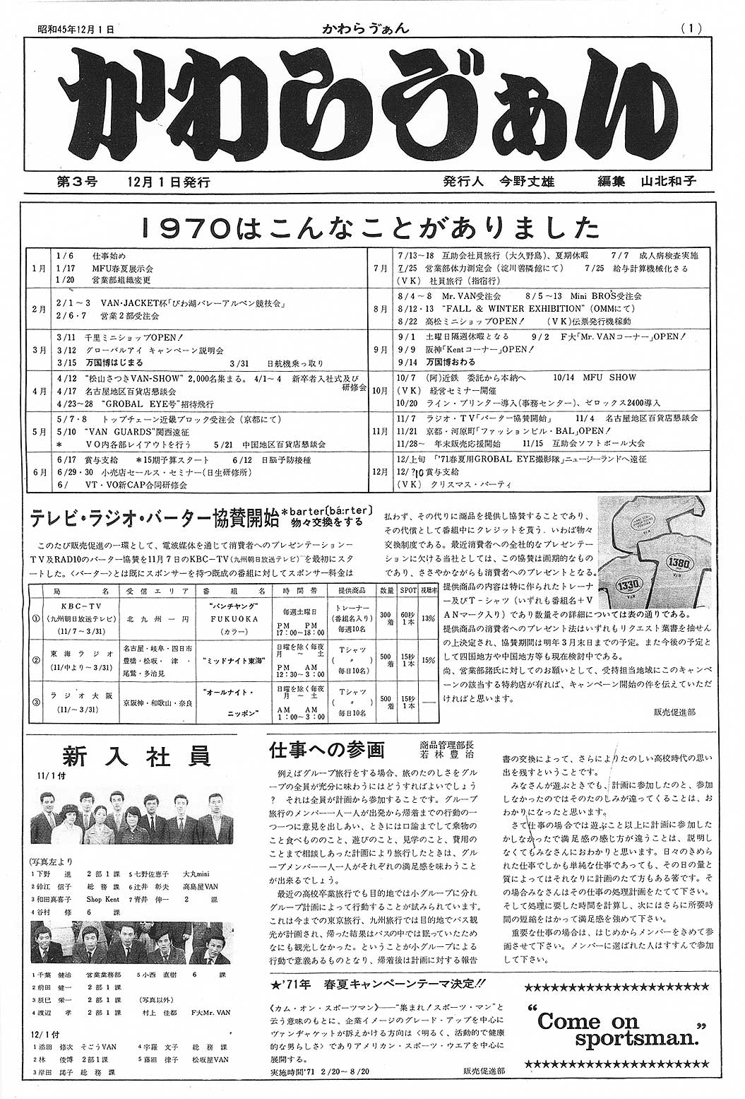 【 1970年12月1日号・・・“かわらう゛ぁん”】