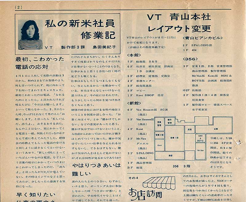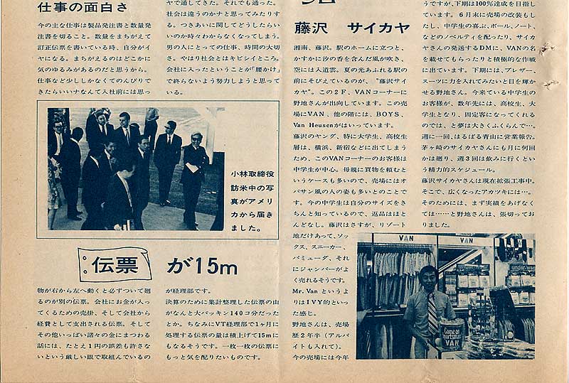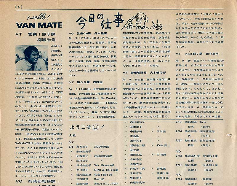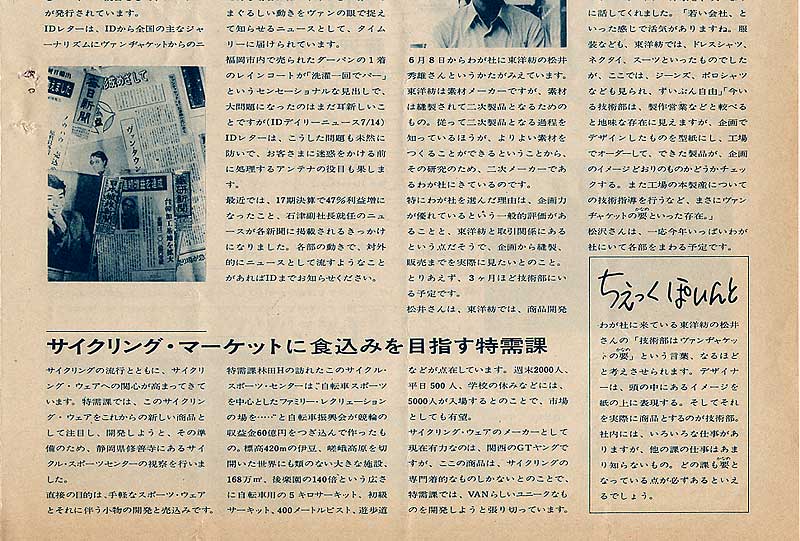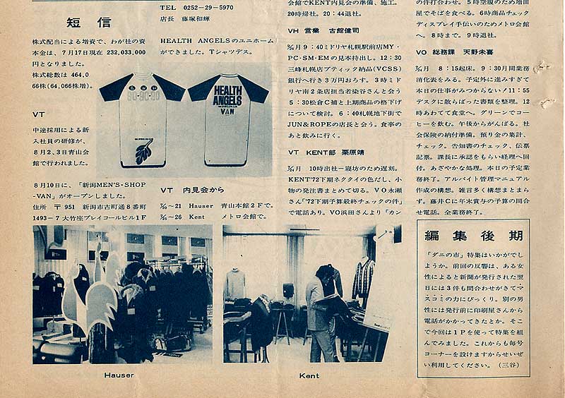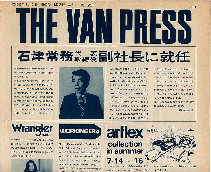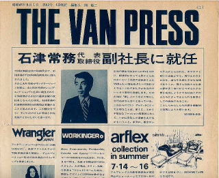 大川専務、高木専務のラングラー及びショップ&ショップス社長就任を踏まえて、石津常務がVAN JACKET副社長としての職務に就任しました。その時の一言を載せています。