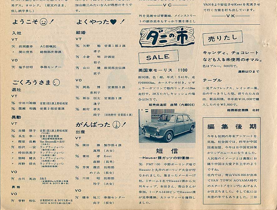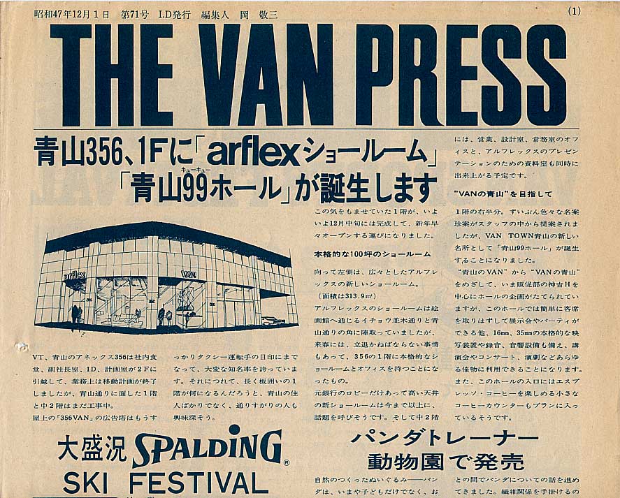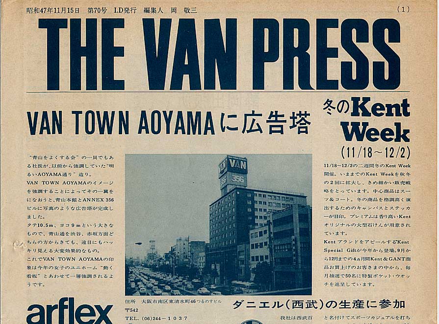 これで本館屋上、またキラー通りに面した新館屋上の広告塔の3箇所に“VAN”のロゴが掲出され、当時の青山通り周辺にまさにVAN TOWN AOYAMAの景観が整ったわけです。