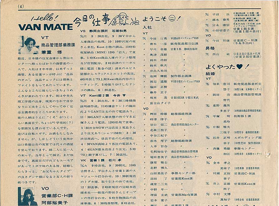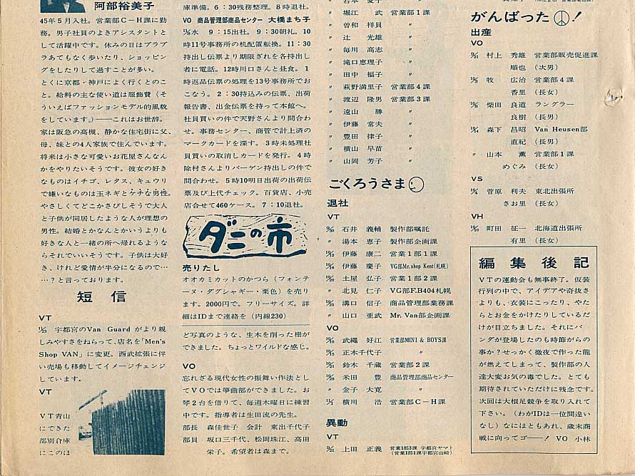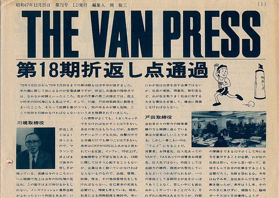 攻撃力には抜群の力を持っていたVAN JACKETの中にあって、守備の要でもあった取締役でした。 |