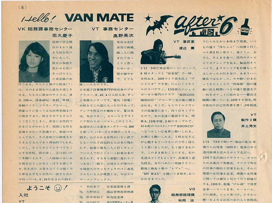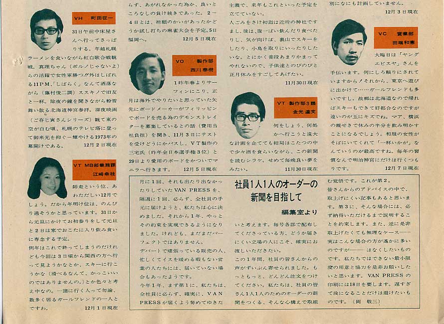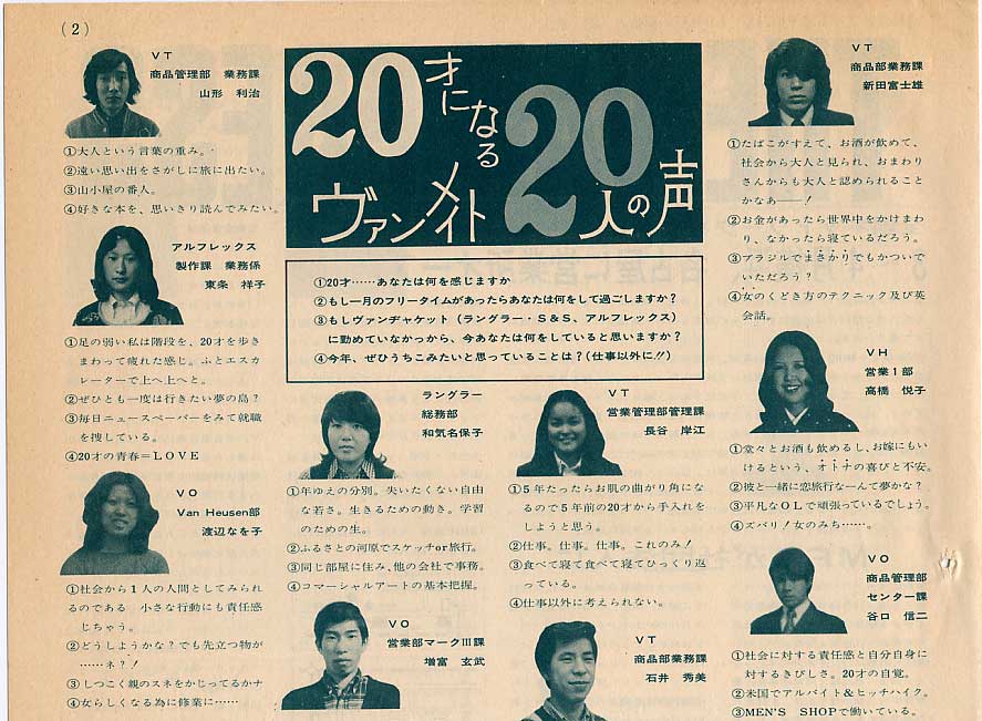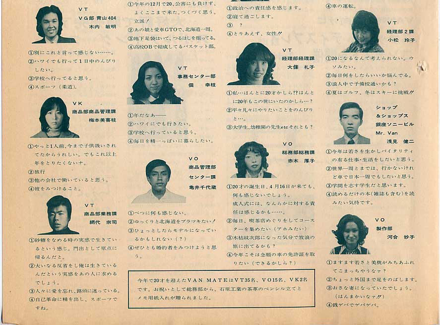 1月15日の成人式(36年前は)に因み、20歳になるVAN MATE(社員)の意気込みも掲載されています。