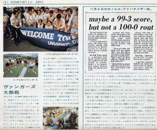 ホノルルの“アドバタイザー紙”は100対0でハワイ大の勝利を謳い、それに対して石津オーナーは 『 地元では100対0で惨敗するとのもっぱらの噂だが、これには賛成しかねる、少なくとも99対3には行くはずだ・・・』