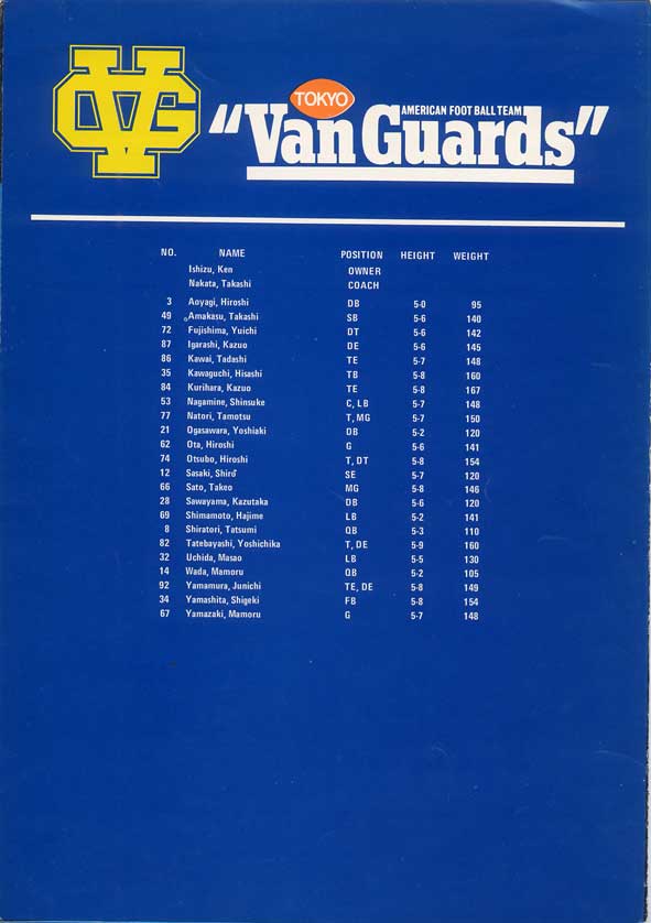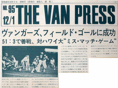 1973年、11月7日、対戦場所はハワイ諸島オアフ島、ホノルルスタジアムに於いて、世紀のミスマッチ・ゲームと地元紙が報じた、我が東京ヴァンガーズ vs ハワイ大学アメリカンフットボール・チーム(2軍)の親善試合が行われようとしていました。