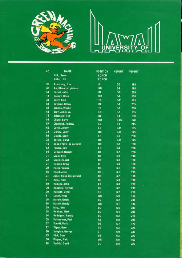 地元紙の伝えるところによると、VAN GUARDSで最も体重と身長が有る者で160ポンド(72.5kg)、5フィート9インチ(177cm)、対するハワイ大は225から250ポンド(102kg〜114kg)、6フィート6インチ(199cm)を誇るモンスターと表現している、つまり大人が赤子を扱うようなものだ、と言う事らしい。