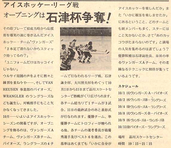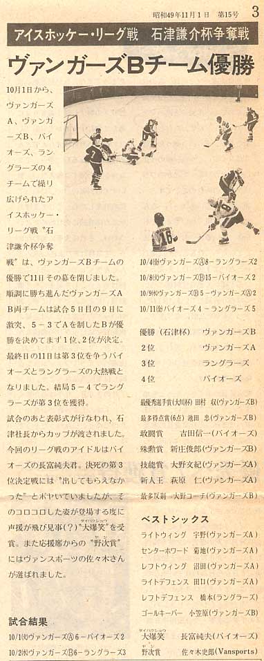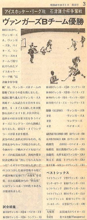 下の写真は、1974年開催されたアイスホッケー・リーグ戦、