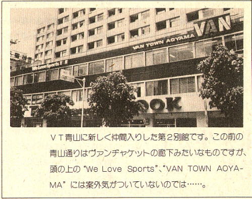 この東光ストアが入ったビルの2Fワンフロアが第2別館と呼ばれ、VAN製作部の一部、制作管理部、アトリエや試験室などが入っていました。この建物の中にはハンバーガーショップ・ウィンピーも有りました。