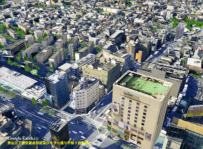| 青山三丁目交差点付近・・・Google Earthより |