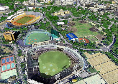 | 神宮球場、国立競技場、絵画館周辺・・・Google Earthより |
