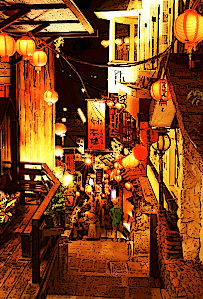 | 台北・九份の路地、“千と千尋の神隠し”の舞台とされている (台湾観光地ガイドより) |