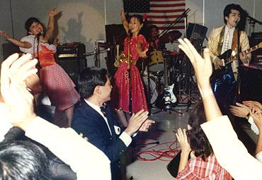 もちろんV社員やバンドメンバーは全員ドレス・アップ。ミラーボウルやスポットライトもセットした。