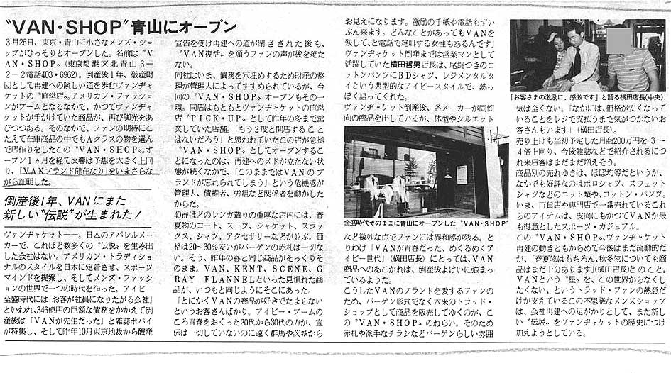 1979年3月26日、<VAN SHОP“PICK UP”店>は、いっさいの宣伝、予告、開店祝いも無く、静かに開店した。