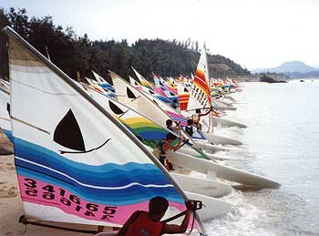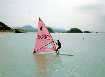 さて、ちょっとした空き時間が出来た時には、私も、ウインドサーフィンに初挑戦してみるのでした。