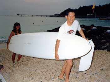 マガジンハウスの内坂君(VAN同期)のボードを貸していただき、新庄コーチの丁寧な助言“乗っちまえばなんとかなるよ!”にも拘らず、ひぇ~なんたる難しさ!セールを立てる事さえうまくいかない。